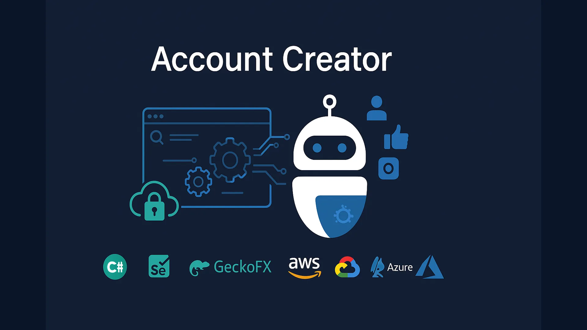 Automated account creator for social platforms, utilizing C#, Selenium, Geckofx, and cloud services (AWS, Google Cloud, Azure). Enables high-volume, unattended account registrations with VPN/proxy support.